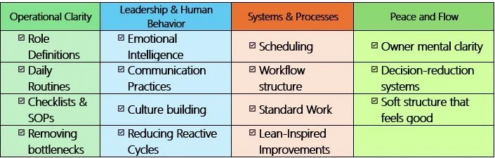 Habits, rituals, and routines thoughtfully designed to prevent chaos from creeping back into your daily life and work. This approach goes beyond corporate Six Sigma methodologies. It combines emotional leadership with practical, sustainable structure to create lasting calm and clarity.